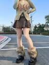 1双短款毛绒腿套,驼色和棕色,秋冬季,蓬松舒适
