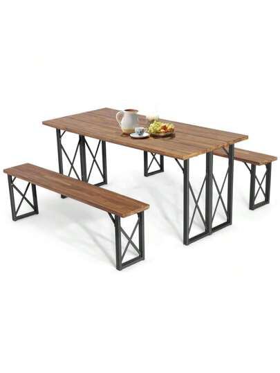 6-Person Outdoor Picnic Table & Bench Set Garden Wood Dining Table - 黑色 - 查看 3