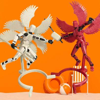 六翼天使战士可动ABS人偶,收藏展示模型套件,需自行组装 - 彩色 - 查看 1