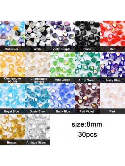 60 件 8 毫米奥地利混合彩色 AB 刻面水晶钻石形状珠子、DIY 手链项链、珠宝和服装配饰 - 8mm-菱形尖珠 - 查看 23