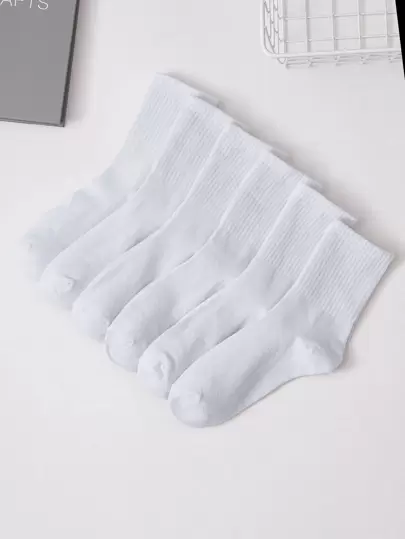 6雙男士素色中筒襪 - 白色 - 查看 1