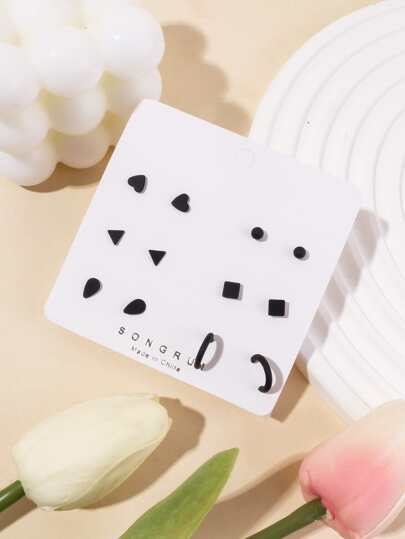 6 对/套三角形和心形装饰耳环情人节、妈妈、母亲、母亲节、礼物 - 黑色 - 查看 1