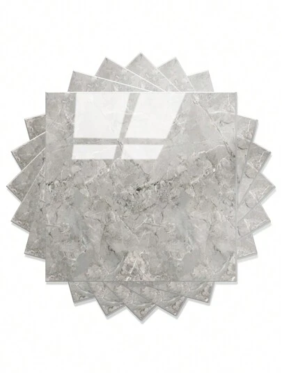 6片/套0.54m2灰色光面大理石紋仿瓷磚牆貼,防水防潮壁紙翻新,3d立體自粘遮醜牆板,可用於衛生間和浴室 - 灰色 - 查看 6