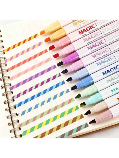6 支/12 支魔法变色荧光笔套装 - 12 支柔和颜色荧光笔 - 彩虹笔适用于日记、卡通、DIY 笔记、绘画、复活节装饰、美术用品 - 彩色 - 查看 12