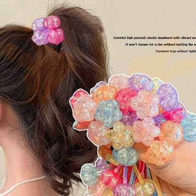 6个/1个不对称串珠发圈,闪亮星星装饰发绳,弹力马尾发带,日常发饰,橡皮筋,发绳 - 彩色 - 查看 10