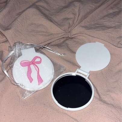 6个/3个/1个粉色蝴蝶结装饰迷你口袋镜套装 - 圆形化妆镜,配白色收纳袋和丝带蝴蝶结,粉色蝴蝶结口袋镜,可折叠便携,韩式美妆配件,女士礼物,生日礼物,新娘礼物