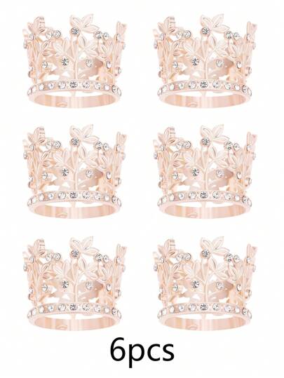 6件套合金迷你皇冠公主头饰,派对用品,派对礼品和装饰品,含节日头饰套装和情人节配饰 - 玫瑰金+白鑽 - 查看 6