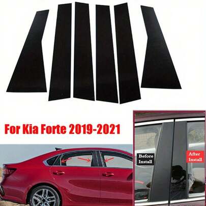 6片黑色装饰门/窗柱饰条贴纸,适用于2019款起亚福瑞迪轿车 - A - 查看 6