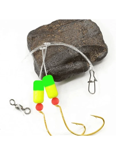 6 件装双滴鲳鱼钓组带浮标,尼龙线带浮标和尖钩,适用于海水冲浪钓鱼、离岸钓鱼钓鱼用品 - 彩色 - 查看 8