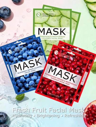 6片装水果面膜套装 – 石榴面膜、蓝莓黄瓜面膜,亮肤保湿护肤面膜,秋冬季节/圣诞节礼物,适合女性 - 彩色 - 查看 1