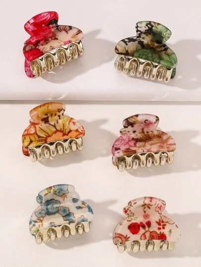 6 件随机颜色碎花图案迷你发夹街头头饰情人节情人发夹发夹发夹发夹发夹接发夹,学校用品,学院秋冬发饰女士度假装女士 - 彩色 - 查看 1