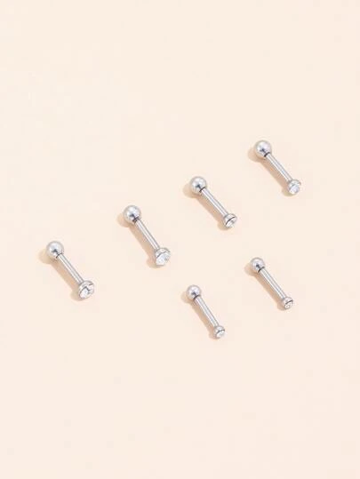 6入組水鑽裝飾耳環 - 銀色 - 查看 1