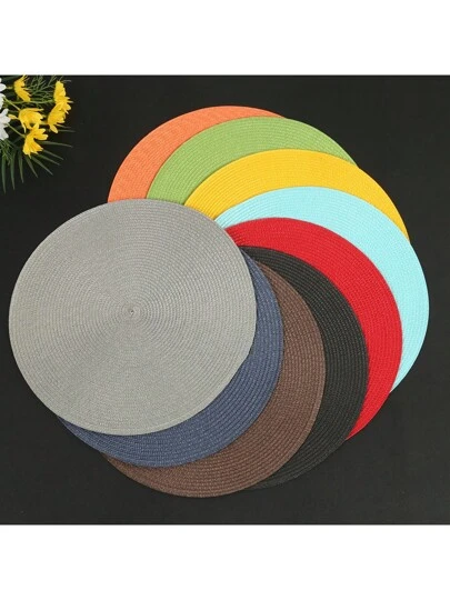 6 件圆形编织纯色耐热餐桌垫,可洗餐垫,适用于家庭、酒店、餐厅 - 彩色 - 查看 6
