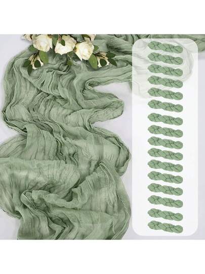 6条鼠尾草绿斜纹桌旗。波西米亚风薄纱桌布,适用于婚礼、派对和生日等场合。耐用涤纶面料。优雅百搭的设计。 - 彩色 - 查看 12