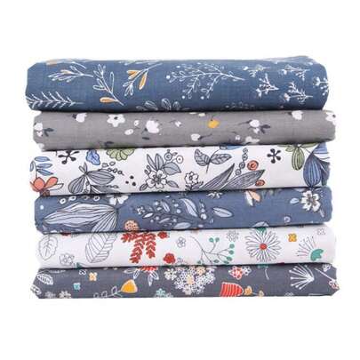 6件套,包括7.87英寸/9.84英寸灰色花叶图案面料、海军蓝格子条纹面料、手工包DIY面料 - 深藍色 - 查看 6
