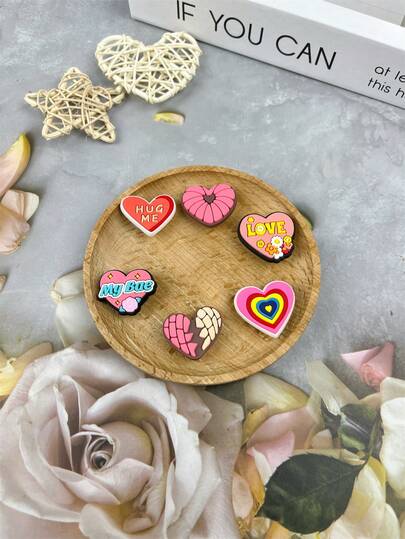 6件套粉色心形卡通图案适用于凉鞋、手链DIY定制、拖鞋、手机装饰,适合海滩度假、生日、节日礼物 - 彩色 - 查看 6
