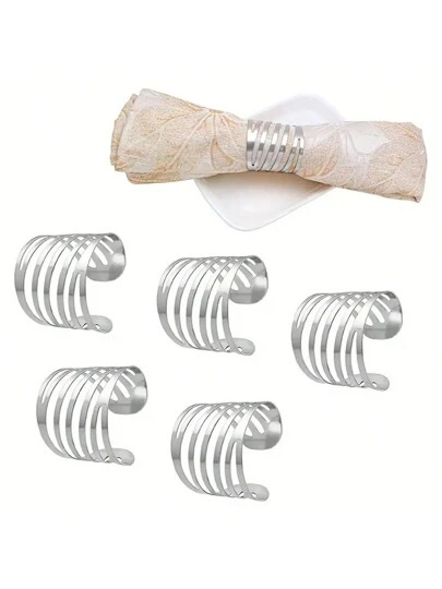6入組時尚彈性條紋餐巾環-非常適合家庭聚會、假日派對、旅館、餐廳桌面裝飾 - 銀色 - 查看 1