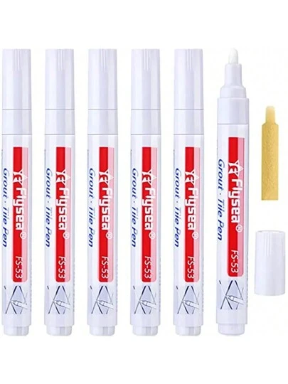 6入組瓷磚筆牆筆修復馬克筆填充物筆適用於恢復瓷磚牆地面浴室和廚房 - 白色 - 查看 6