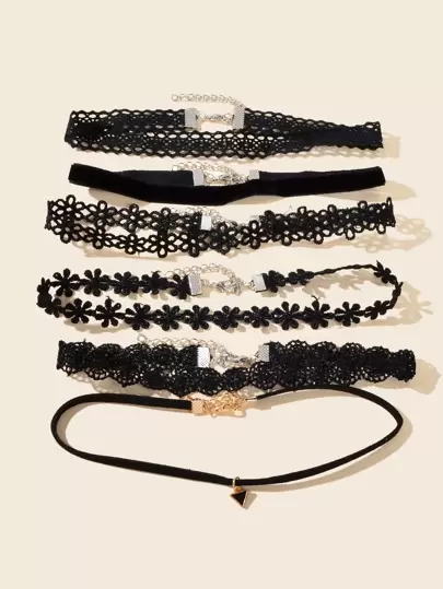 6入組三角形吊墜頸鏈 - 黑色 - 查看 1