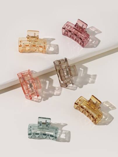 6 件装女士透明小方形爪夹适合日常佩戴街头发夹发夹发钳发夹发夹发夹,学校用品,学院秋冬发饰适合女士度假装扮 - 彩色 - 查看 1