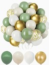 41 件鼠尾草绿和金色气球套装,包含金色五彩纸屑气球,适用于婚礼、迎婴派对、新娘送礼会、动物园、生日派对装饰