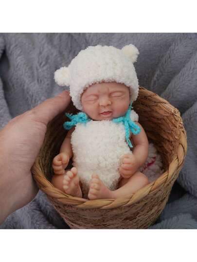 7英寸逼真重生娃娃,身穿白色服装 - 全身柔软硅胶新生女婴娃娃,逼真重生娃娃,儿童生日、圣诞节、万圣节的绝佳礼物
