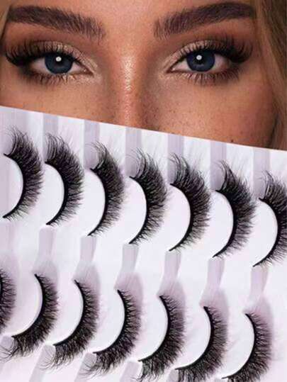 7对3D蓬松仿貂毛假睫毛,长度12毫米