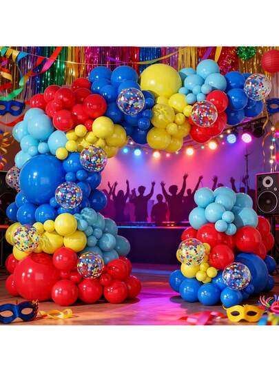 71个/137个/177个生日派对气球装饰套装,嘉年华派对气球装饰套装,包含红色、黄色、蓝色气球,适用于生日派对、嘉年华派对、婚礼派对、狂欢节派对、周年纪念派对等场合。 - 彩色 - 查看 1