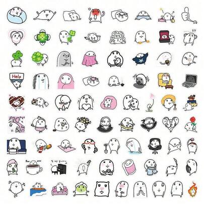 72张创意麻糬表情贴纸套装,抽象插画手绘麻糬卡通人物贴纸,适用于剪贴簿 - 麻薯表情包-72張(防水貼紙) - 查看 1