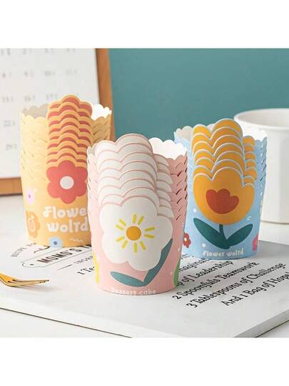 75入組漫畫花紋紙杯蛋糕杯-高溫耐用,適用於烤箱! - 太陽花 - 查看 1