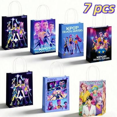 7个装 K-Pop & SajaBoys 可爱卡通生日礼物手提袋,创意贺卡礼品袋,购物袋,收纳袋,带提手的纸质糖果袋,主题生日庆祝和礼品袋,公主主题派对礼品袋,适用于圣诞节、万圣节、感恩节、新年、情人节、复活节、母亲节 - 彩色 - 查看 7