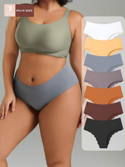7条/包 大码女士纯色无缝真丝三角裤,休闲简约时尚不卷裆弹力舒适女士内裤 - 彩色 - 查看 7