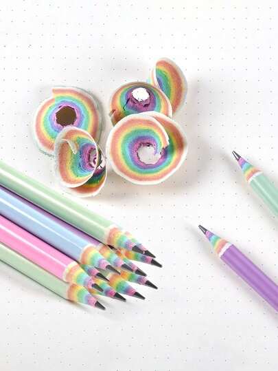7支装彩虹铅笔,HB笔芯,纸质彩虹铅笔,书写铅笔,小学文具,学习用品,返校季,节日礼物