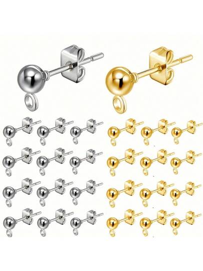 80入組低敏球形耳針套裝,包括40件球形耳針和40件蝴蝶扣耳背,供diy珠寶鑲嵌/耳環製作使用(有環) - 80件 - 查看 1