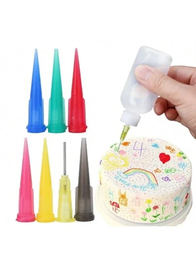 8入組果醬繪畫擠壓瓶,配有7種嘴瓶,蛋糕裝飾、糕點、50ml瓶繪畫工具,果醬罐、蛋糕工具 - 彩色 - 查看 7