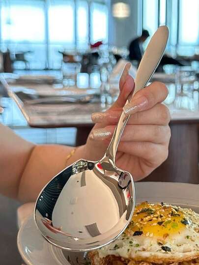 8件/4件/2件/1件不锈钢大汤勺,耐用加厚汤勺,适用于酒店自助餐和餐厅,餐具,甜点勺,刀叉套装 - 銀色 - 查看 5