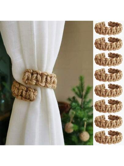 8 件波西米亚风藤条窗帘系带,乡村风窗帘固定件 4 件套(8 件),用于窗帘的编织绳固定件,编织纹理,复古窗帘系带,非常适合卧室和客厅装饰,窗帘装饰,窗帘固定件窗帘系带。 - 彩色 - 查看 8
