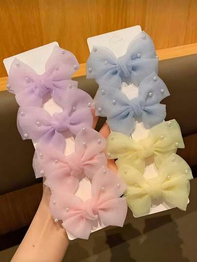 8个蝴蝶珍珠发夹,适合青少年,可爱温柔的侧刘海夹,甜美发饰,包装精美 - 彩色 - 查看 8