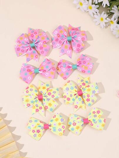 8 件女孩花朵图案发饰彩色花朵印花罗缎蝴蝶结鳄鱼夹粉黄花朵蝴蝶结发夹可爱度假蝴蝶结套装发夹青少年发饰 - 彩色 - 查看 1