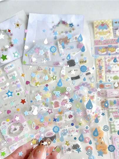 8张/套 原创可爱卡通标签边框文字剪裁材料贴纸 星星日记装饰贴纸 - 貼紙 - 查看 3