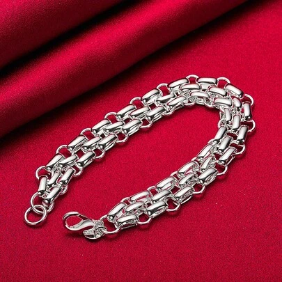925纯银镀层互扣圆环手链,女士时尚魅力婚礼订婚首饰 - 銀色 - 查看 1