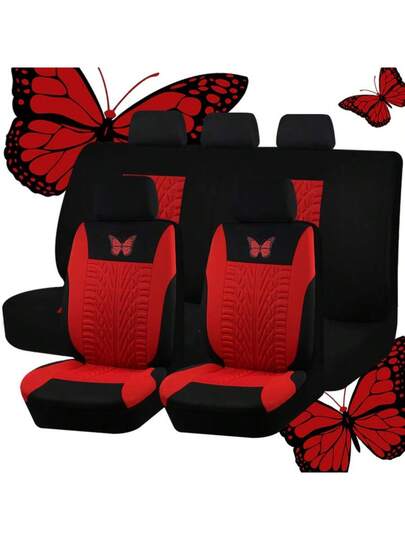 9件套彩色蝴蝶印花汽车座椅套,通用尺寸,兼容安全气囊开口 - 蝴蝶壓機 - 查看 9
