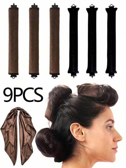 9 件/6 件/3 件/1 件全新卷发梳无需加热波浪卷发器工具、睡眠过夜卷发滚筒、卷发器、无热卷发、卷发器、理发沙龙美容旅行必备美发产品及配件 - 彩色 - 查看 9