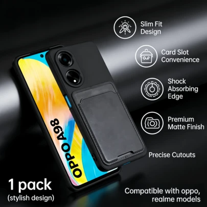 适用于 Reno15 C、Reno15 F、A6、F31 Pro、Find X9、15x、C85 Pro 和 16 Pro+ 的黑色卡包式手机壳 - 手机卡包。 - 黑色 - 查看 1