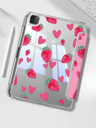 一款可爱的卡通动漫红色书本爱心草莓图案双面亚克力透明水晶后盖,防震,兼容iPad 7、8、10代(10.2英寸),内置笔槽,支持睡眠/唤醒功能,是理想的圣诞节和新年礼物。 - 彩色 - 查看 3