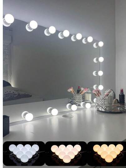 多尺寸 USB 三色化妆 LED 镜前灯,亮度和色温可调,可旋转理发器可调光梳妆台灯泡,有 2led/4led/6led/8led/10led/12led/14led/16led 可选 - 白色 - 查看 12