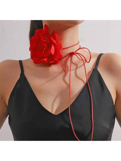 A Vintage Rose Pink Flower Necklace Evening Accessory Tie Choker Collar Necklace