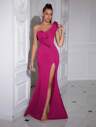 ADYCE 单肩纯色褶裥装饰前开衩鸡尾酒会约会之夜连衣裙,圣诞派对连衣裙