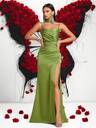 ADYCE 女式单肩褶皱高开衩腰鸡尾酒会长裙,适合舞会/返校节
