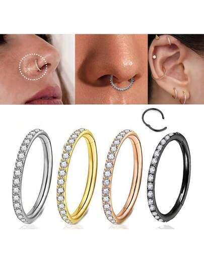 ADYJELY 1 件装透明 CZ 铰链鼻环圈 16G 不锈钢点击器段隔膜鼻唇眉环穿孔软骨耳环耳垂耳轮耳甲耳屏耳轮肚脐环、乳头环、黑色 6mm 8mm 10mm 男女身体穿孔首饰 - Titanium-Side Top Engraved CZ - 查看 14